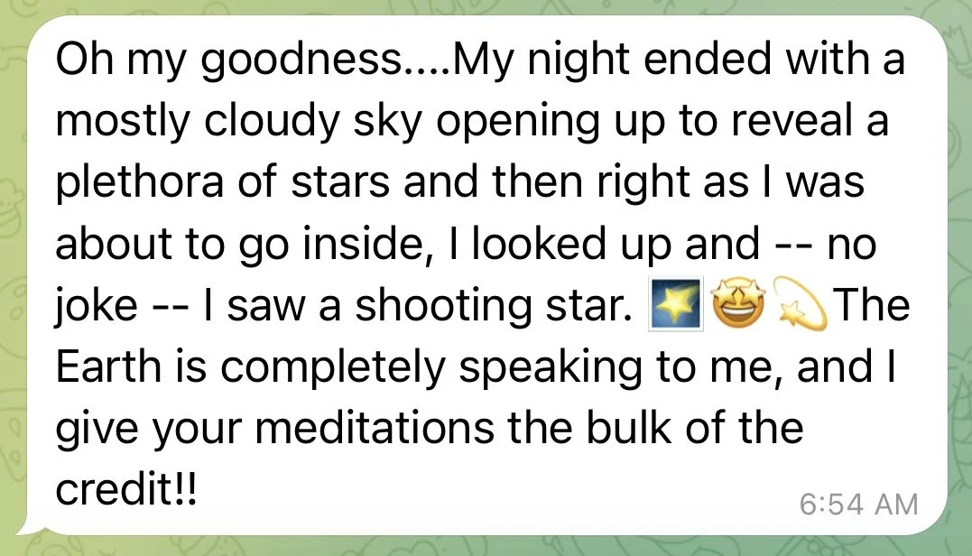 “Everything was so clear in the activation meditation, it was so vivid and visceral, I was legitimately crying for the last part of it and my body is still vibrating.