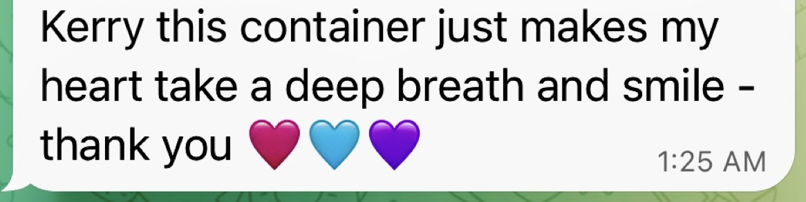 I've worked with Kerry virtually too, and every experience I have with her brings me closer to myself in ways I could have never imagined. Thank you for everything you do, Kerry!”