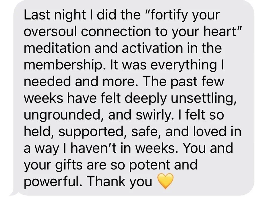 “It was such a huge activation. Everything was so clear in the activation meditation, it was so vivid and visceral, I was legitimately crying for the last part of the meditation and my body is still vibrating. When you said certain words, when you said co-creation, I felt a fire in my sacral chakra and it was sacredly burning. I've never had such intense body sensations before like this with every single word when you were saying.